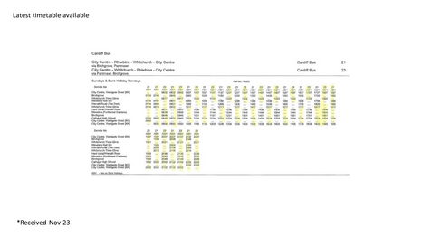 (The bus services highlighted yellow on the timetables are the specific journeys/bus services that are being supported, the other journeys remain commercially available).